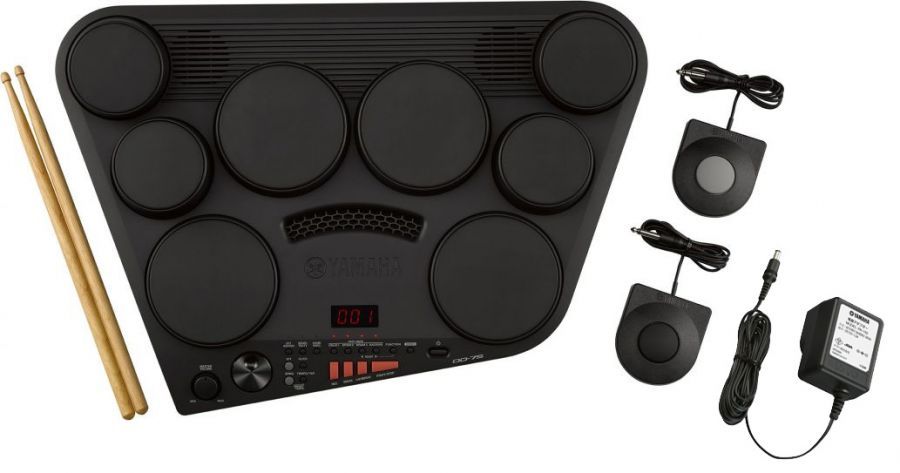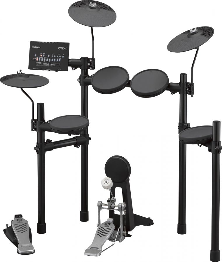 Complete e-drum-set, DTX402 module, rack-system, max. polyphony 64, 287 drumsounds, 128 keyboard voices, USB-TO-HOST, AUX IN, 1x snarepad, 3x tompads, 3 x cymbalpad, 1x hihat controller, 1x kickpedal, 10 drumkits, 10 songs, 10 trainingsfunctions