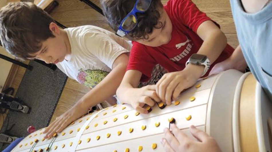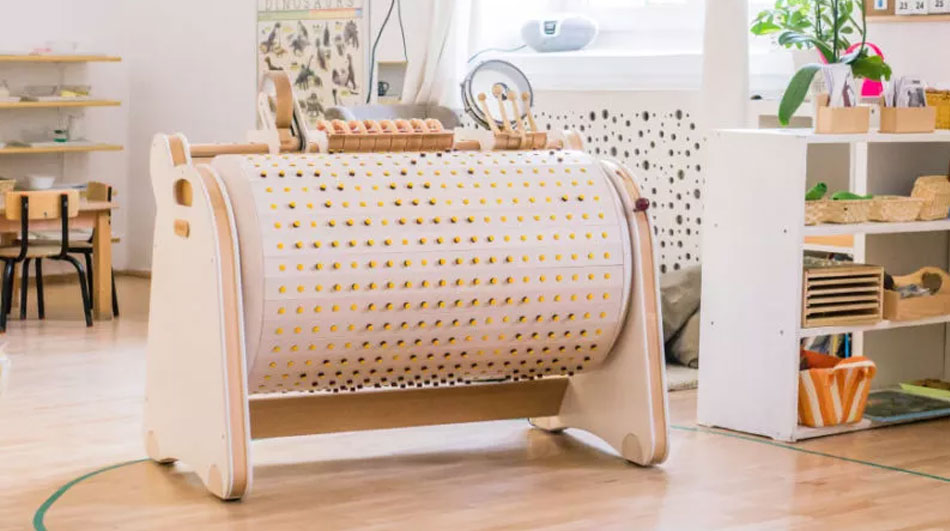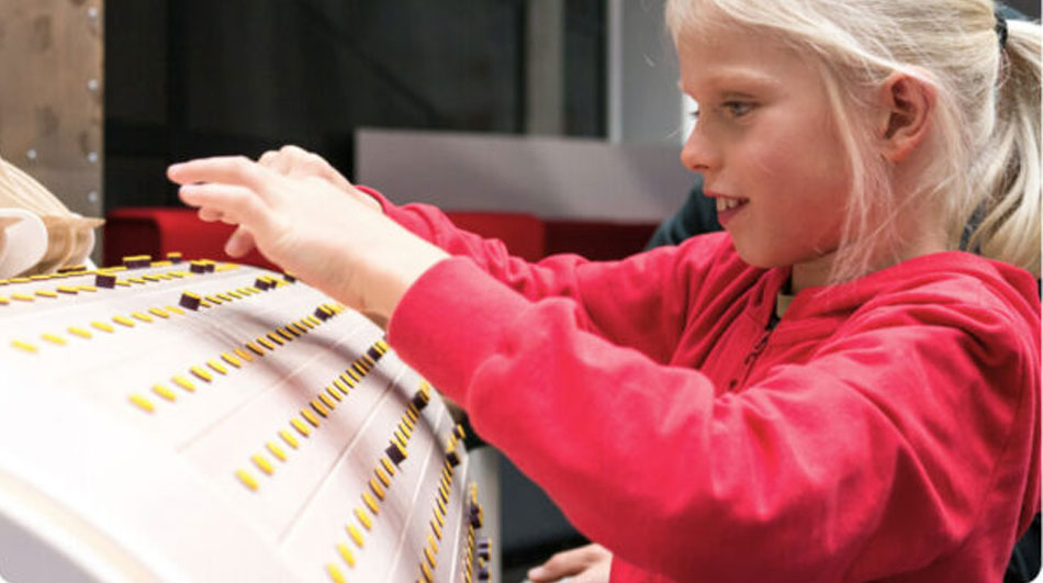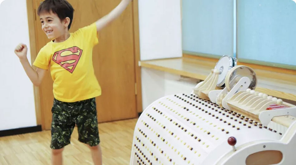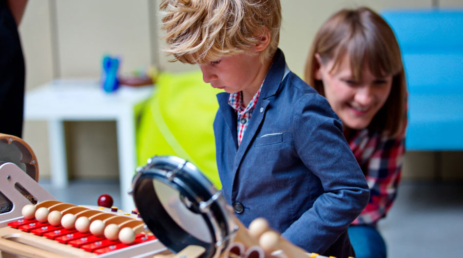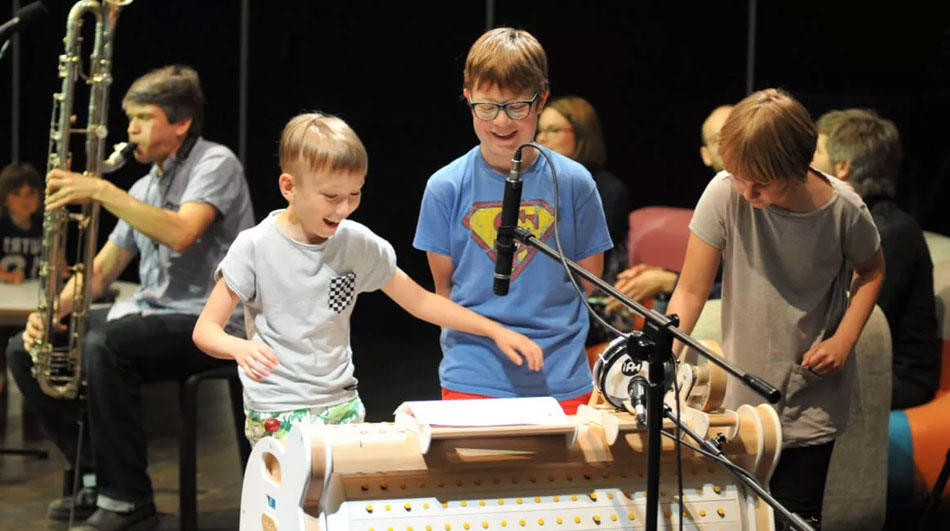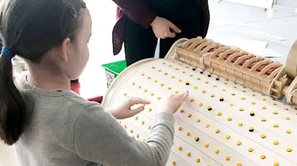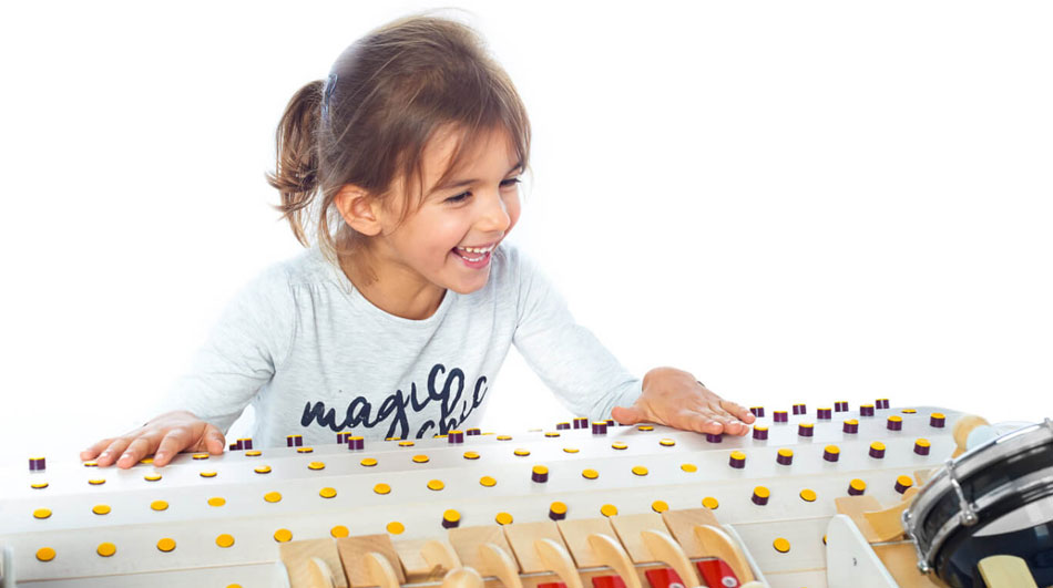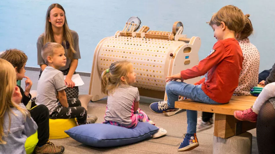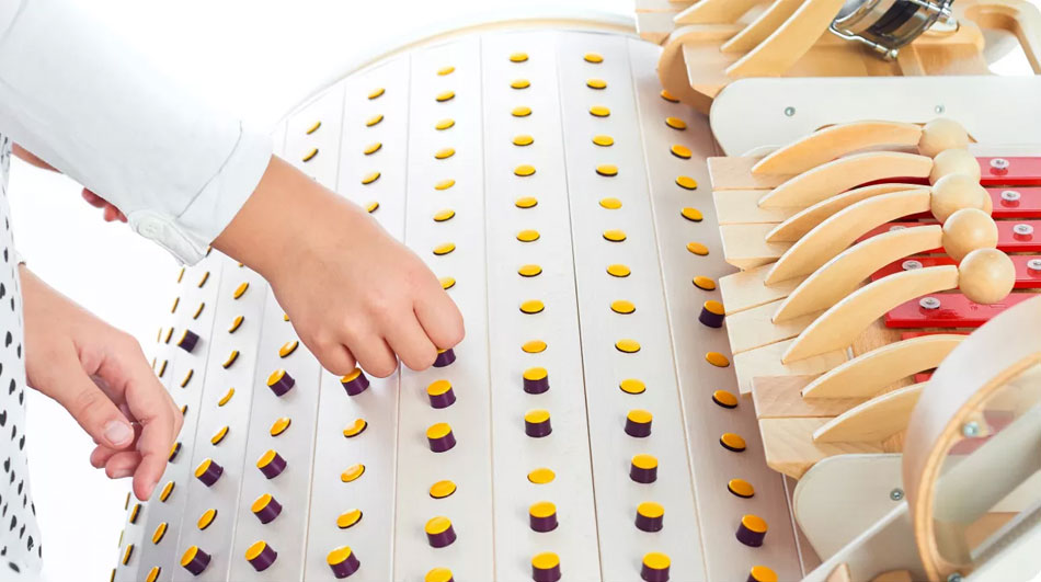 Musicon works similar to a barrel organ, with the difference that the child becomes a composer.