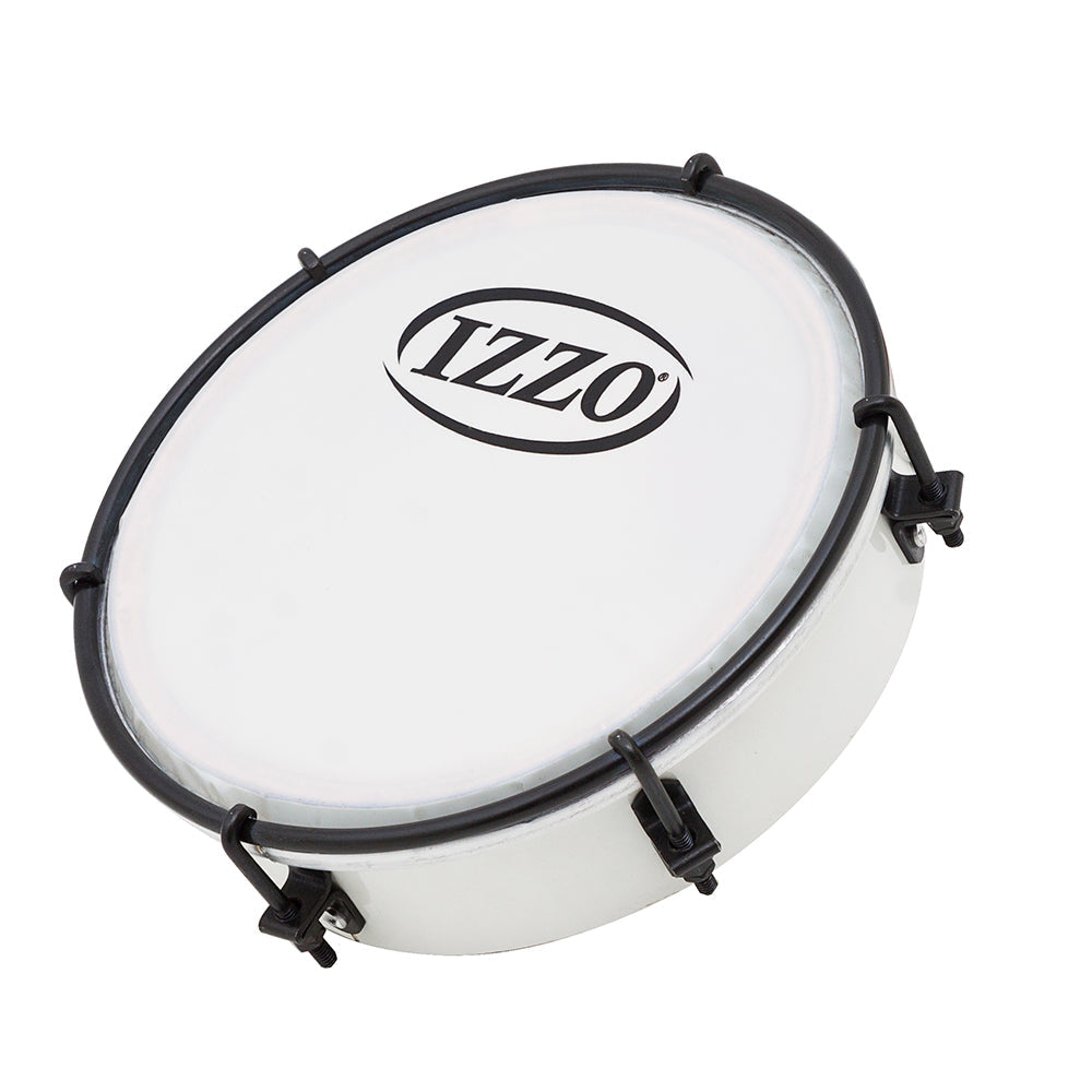 The shallow tamborim is traditionally hit with a double or triple pronged plastic stick, and plays the distinctive high pitched syncopated rhythms in a samba band.